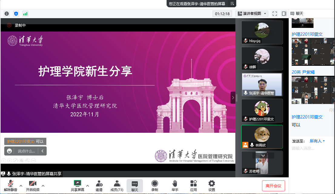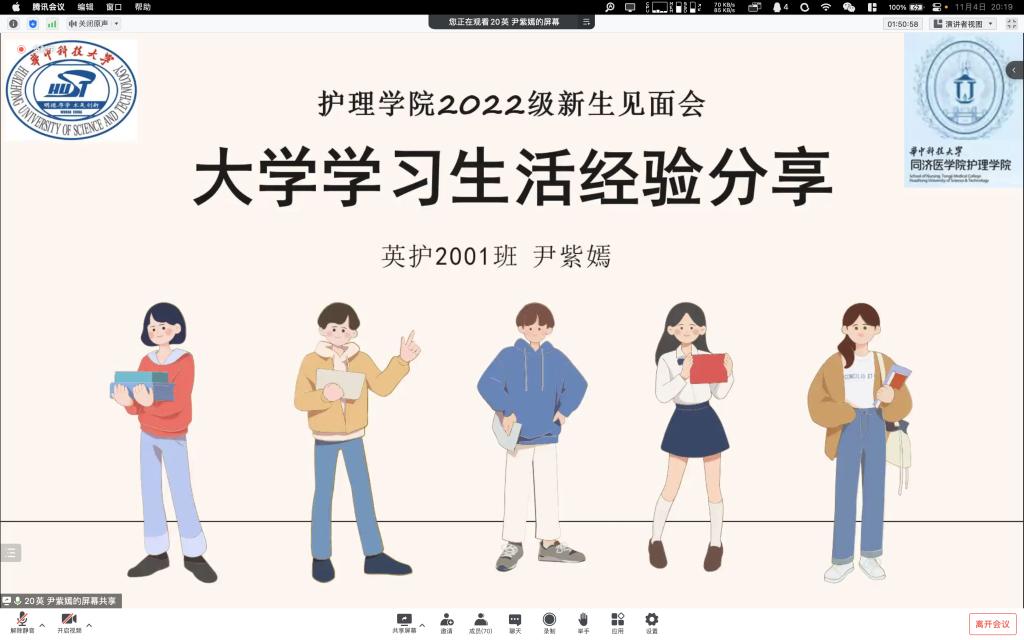会议伊始,徐晖书记从“学校风光”、“生活日常”、“职业规划”、“未来展望”四个方面,用平易的语言和独特的视角,向22级同学们展示了华科护理学强大的专业实力和广阔的学科前景,讲述了共和国成立以来护理学日新月异,欣欣向荣的创新发展历程。