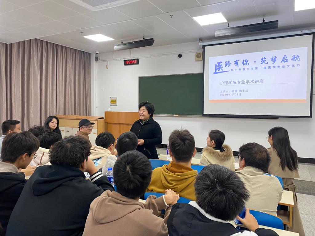 金风送爽,梧桐纷飞。2023年11月28日,beat365英国官方网站第一届医学专业文化节beat365英国官方网站学术讲座暨2023级新生专业思想教育在东十二楼310教室如期举行。主讲嘉宾为杨莹博士后,beat365英国官方网站党委书记徐晖、2023级教师班主任白雪、付文宁、院学生办主任陈介清、医科办公室洪玮辰等老师参加了此次活动,讲座由英护2301班解佳霖同学主持。