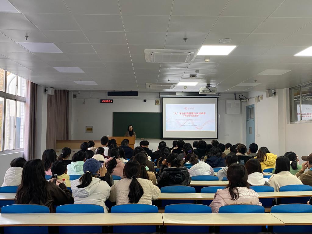 杨莹老师首先展示了调研新生问题之后的总结,结合自身本硕博三个阶段的求学经历,阐述了设立人生目标的重要性。她呼吁新生们广泛参与各项活动,在实践中发掘个人兴趣所在。杨莹老师强调自我管理的关键性,鼓励暂时迷茫没有方向的新生,勇敢地去做“一定正确的事情”,比如读书思考、志愿义工等等,通过“过渡性”的短期目标为人生蓄力积淀。随后,她强调“批判性地接纳专业性的观点”,指导新生们在成长中不断修炼专业认知,以广阔的视角思考专业价值和个人价值之间的关系。最后,杨莹老师给同学们分享了个人珍藏的书目,并鼓励同学打好通识基础,树立正确的人生观和职业道德。