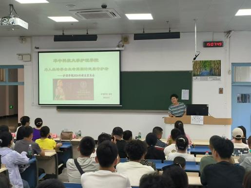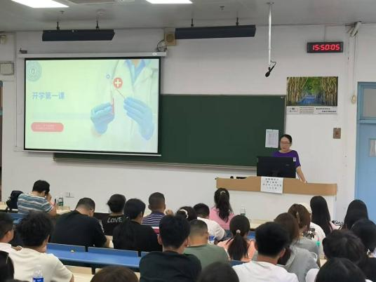 24级教师班主任李节副教授给新生上开学第一课。李节老师从护理专业简介、护理专业的社会需求、护理专业的职业价值、护理专业的个人发展这四个方面进行讲解,让24级新生对护理领域有了自己的初步认知,同时她还勉励24级的新同学要多发现平时学习生活中的问题、多和老师沟通,保持良好的学习生活习惯。