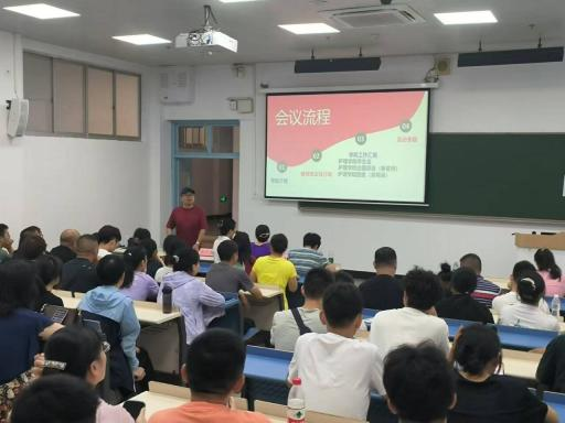 新生家长会分为四个环节:学院介绍、开学第一课、团学组织汇报、互动答疑。