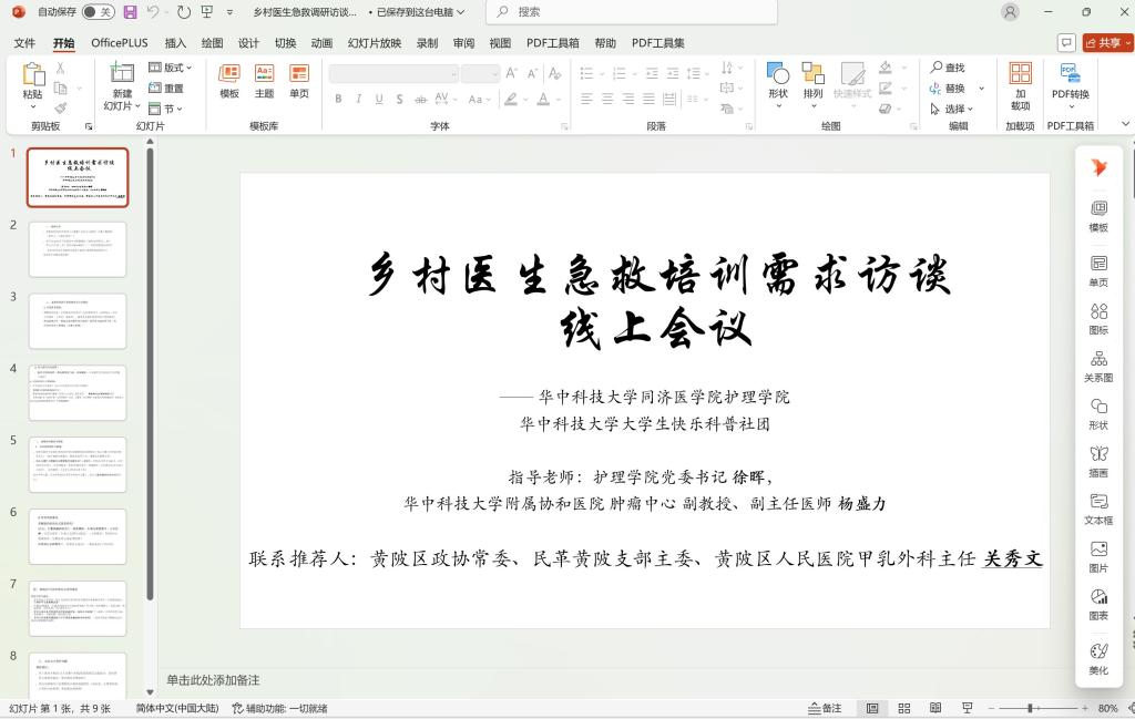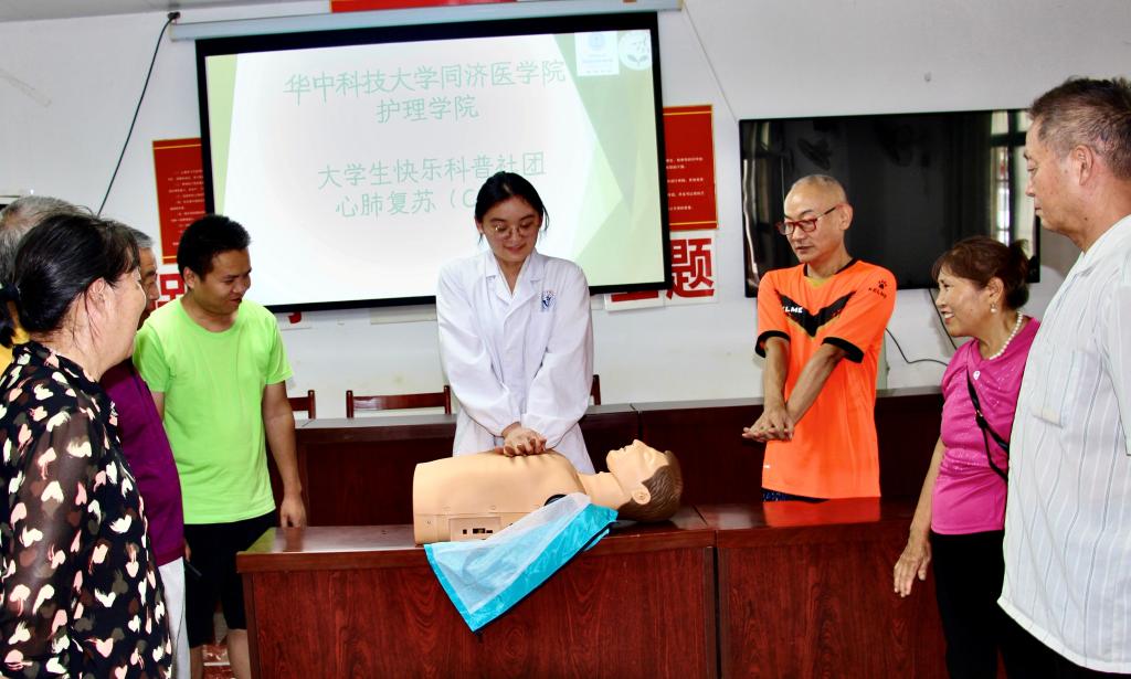 为响应乡村振兴与健康中国战略,推动优质医疗资源下沉,2025年7月22日至24日,在beat365英国官方网站党委书记徐晖、beat365英国官方网站beat365英国官方网站附属协和医院肿瘤中心副教授杨盛力的指导下,一支跨学科“大学生快乐科普志愿服务暑期社会实践队”以“线上+线下”双轨协同模式,深入湖北省武汉市黄陂区,开展以“提升乡村急救素养、赋能基层护理能力”为主题的社会实践。团队通过“精准调研-靶向培训-专业服务-立体传播”闭环实践,助力打通乡村急救知识普及“最后一公里”。