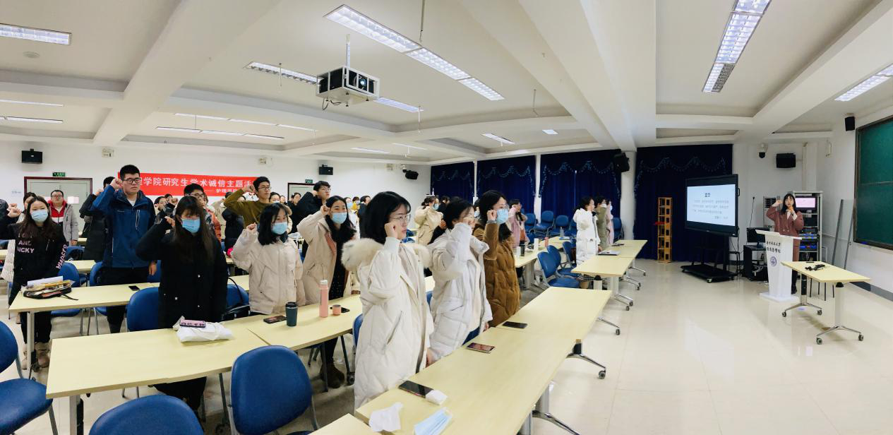 最后,为进一步加强同学们学术诚信意识,主持人姜博文带领全体同学进行了庄严的宣誓:我承诺,遵守学术规范,坚守学术诚信,恪守学术道德,维护学术尊严,抵制学术不端,争做优良学风建设的践行者。