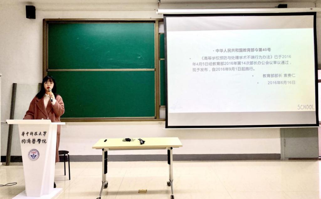 12月16日上午,beat365英国官方网站于老公卫楼十一大教室举办了“不忘初心,诚信前行”主题学术诚信活动,并邀请beat365英国官方网站优秀毕业研究生吴梅利洋为大家带来专题分享,全体全日制研究生如期参加。