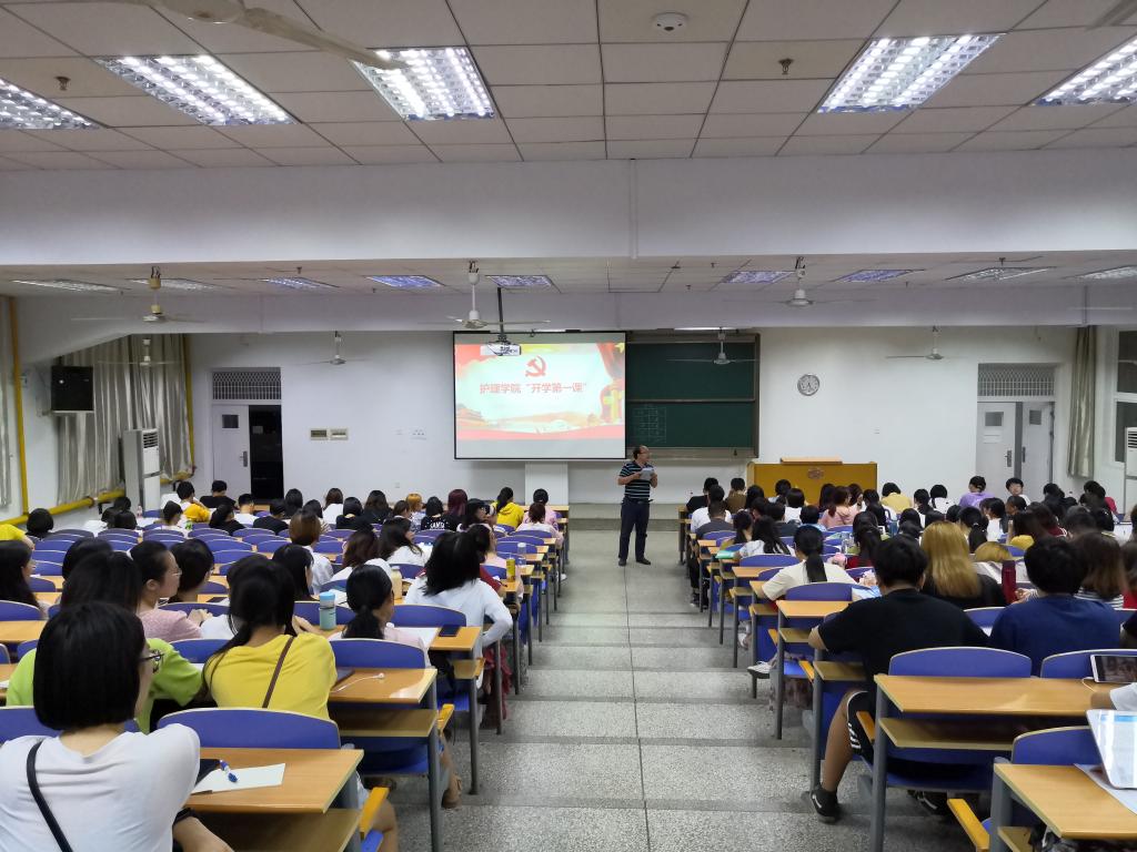 831日2019级本科生、研究生参加了在beat365英国官方网站八楼会议室举行的迎新座谈会。徐晖书记、各教研室主任辅导员等出席会议会上,徐晖书记着重介绍了护理学院的概括、专业特点以及应具备的素质与能力,鼓励大家勤奋学习、积极创新。
