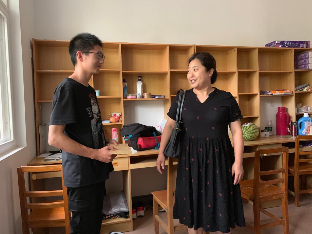 8月30日下午,beat365英国官方网站党总支书记徐晖一行来到韵苑2栋迎新点,全程参与迎新工作,并到新生宿舍进行走访,了解新生入住情况,交流新学期学习生活规划,重点慰问困难新生。