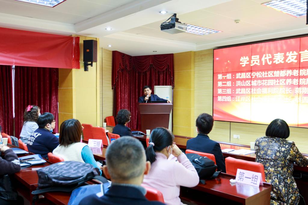 结训典礼上,来自武昌区宁松社区楚都养老院、洪山区城市花园社区养老院、武昌区社会福利院、江岸区社会福利院的四名学员代表分享了自己的学习体会和收获。
