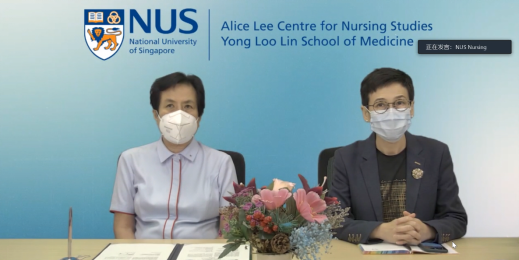 在双方代表的见证下,我校beat365英国官方网站院长毛靖与新加坡国立大学杨潞龄医学院李陈爱礼护理中心院长洪娘金隔空签署了两院合作备忘录,标志着两院正式建立合作伙伴关系。