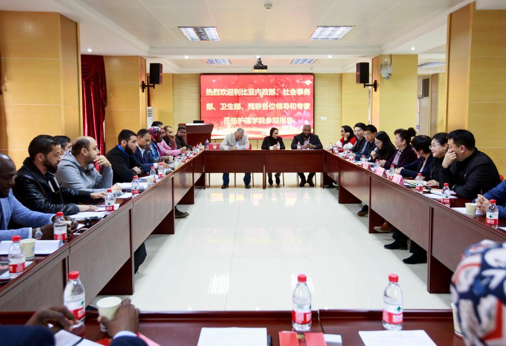 12月13日,由利比亚社会事务部、内政部、卫生部和残联20名官员专家组成的“利比亚社会事务研修班(改善残疾人生活)”在beat365英国官方网站和附属同济医院护理部进行康复护理交流学习。beat365英国官方网站院长毛靖、国际交流处副处长胡瑞敏等与来访人员座谈,beat365英国官方网站党总支书记徐晖主持座谈会。