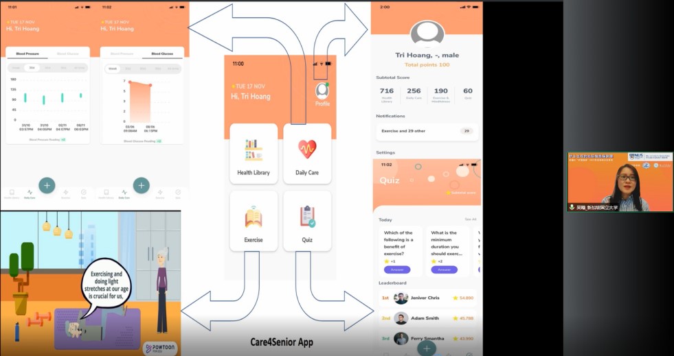 李陈爱礼护理学中心吴曦助理教授围绕她正在开展的“新加坡社区电子保健计划”,从资料收集程序、结果指标测量、测试与反馈几个角度进行了交流与分享,并演示了其团队开发的专门为老年人提供健康教育、健康监测等服务的手机程序。吴曦强调通过借助电子科技,为患有慢性病的社区老年人提供服务,帮助其提升疾病管理能力,健康而有意义地安度晚年生活。