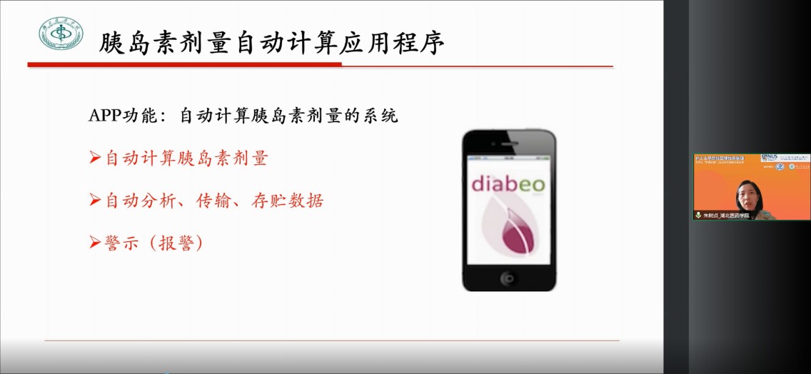 湖北医药学院beat365英国官方网站朱树贞副教授以“5+1”社区糖尿病分阶段管理模式为切入点,分享了其课题组基于移动医疗设计的胰岛素剂量自动计算应用程序。该应用能够实时个性化地调整胰岛素剂量,以帮助糖尿病患者实现自我管理支持,同时避免因剂量注射的偏差产生的风险。