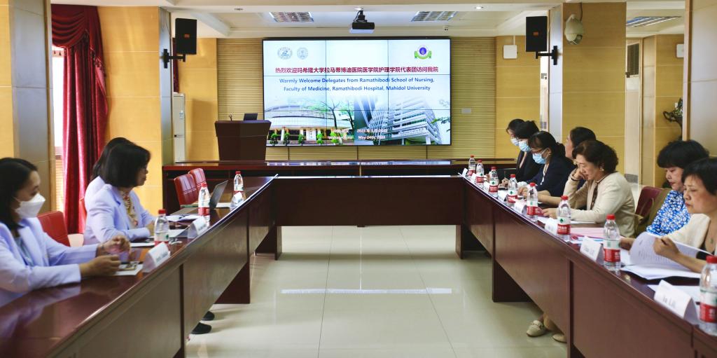 5月25日上午,Poolsuk Janepanish Visudtibhan院长一行与附属协和医院黄恺副院长会面,参观了协和医院心血管外科ICU、老年科、妇产科及儿科血液病区。国际交流办公室高峰主任、护理部刘义兰主任、耿力副主任及部分总护士长参与接待并陪同参观。