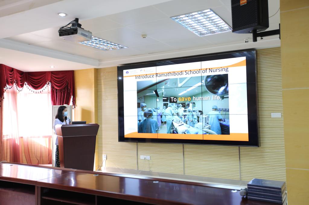 国际交流处王海昆主任回顾了今年3月陈建国副校长率团前往玛希隆大学访问的难忘经历。她指出,beat365英国官方网站与玛希隆大学核心合作伙伴协议的成功签署标志着两校开启友谊合作新篇章,也为本次拉马蒂博迪医院医学院beat365英国官方网站的回访奠定了有利基础。护理学生互访交流是beat365英国官方网站beat365英国官方网站与玛希隆大学拉马蒂博迪医院医学院目前正在签署的学生交流协议中的重要内容,期待今年暑假,双方beat365英国官方网站的学生能够成为协议的首批受惠者,参加学习交流活动。