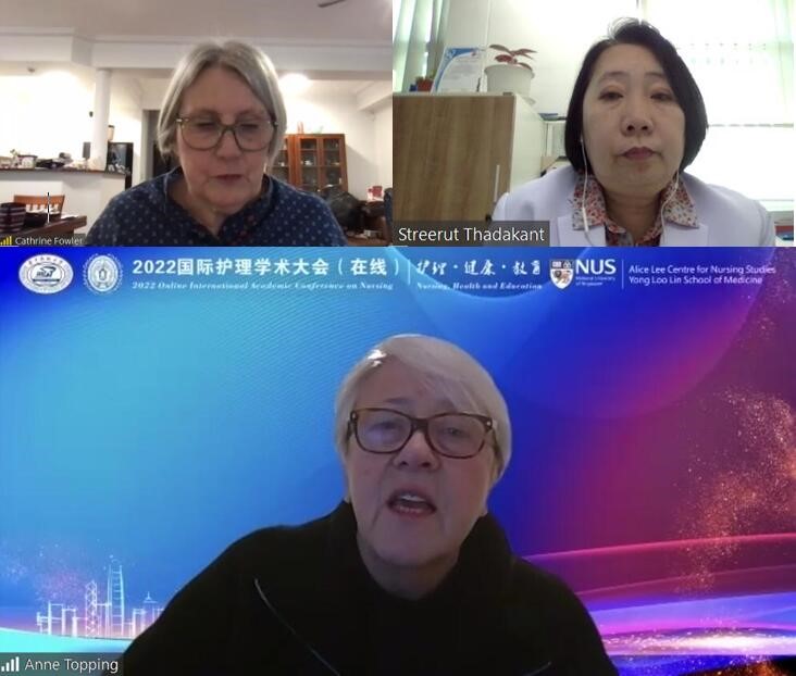 12月10日-11日,由beat365英国官方网站和新加坡国立大学杨潞龄医学院李陈爱礼护理学中心联合举办的“2022国际护理学术大会(在线)”成功举办。来自中国、美国、英国、新加坡、澳大利亚、泰国等国内外12所一流高校的15位专家围绕全球健康、社区护理、癌症研究等主题作专题报告。beat365英国官方网站副校长陈建国、澳大利亚伍伦贡大学副校长Patricia Davidson、新加坡国立大学杨潞龄医学院李陈爱礼护理学中心院长Emily Ang、beat365英国官方网站国际交流处处长陈洁、beat365英国官方网站院长毛靖出席开幕式并致辞,beat365英国官方网站党委书记徐晖主持开幕式。