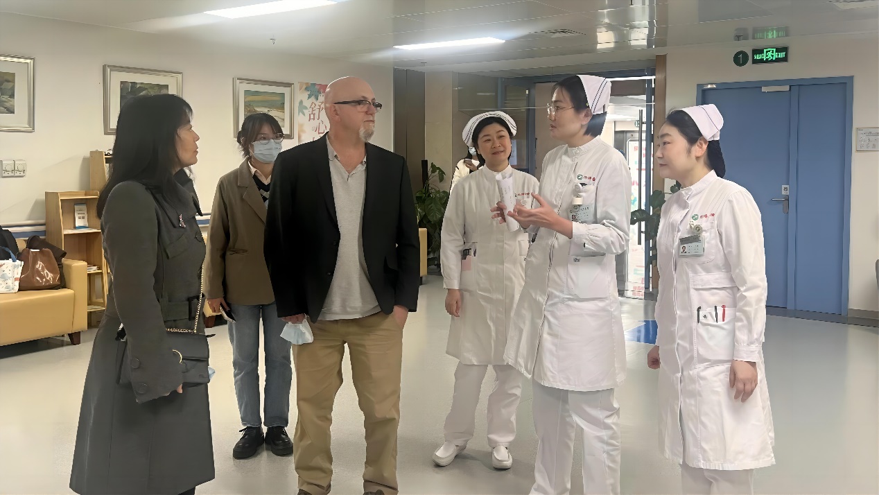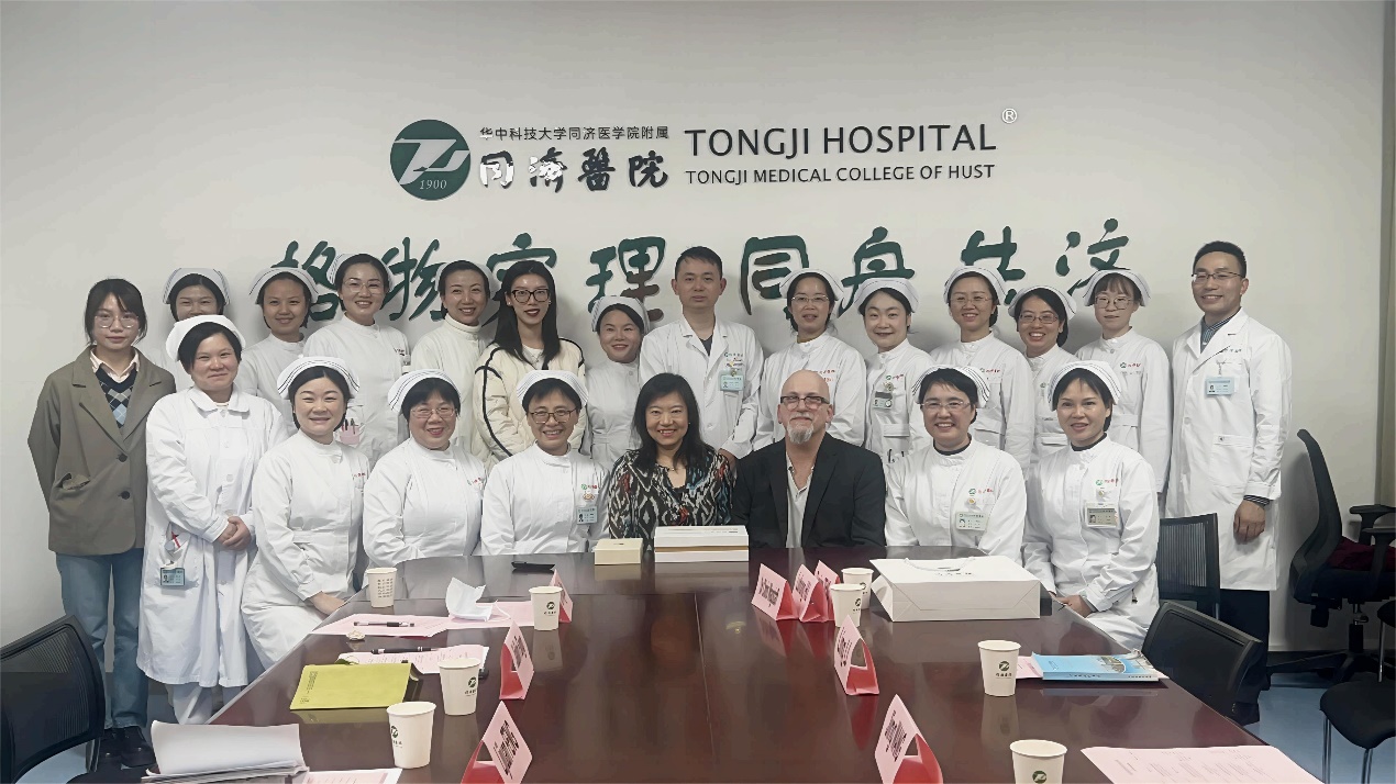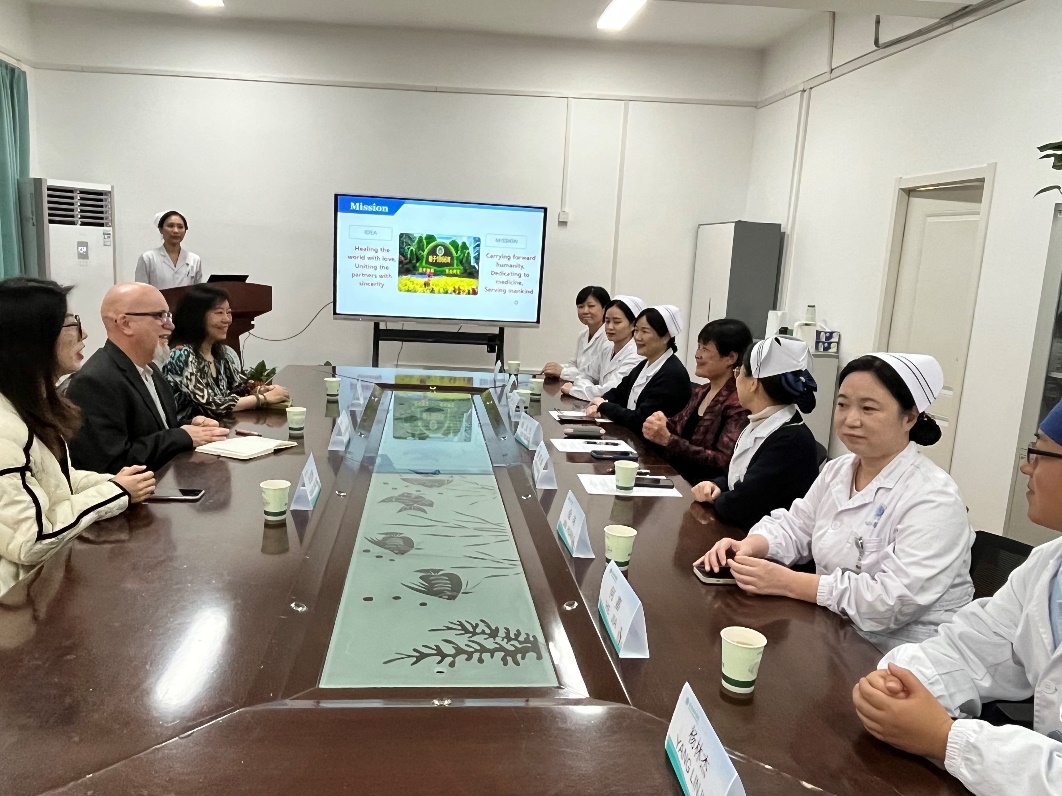 11月28日下午,Ping Guo和Christopher Wagstaff到访beat365英国官方网站beat365英国官方网站附属同济医院,与护理部副主任曾铁英、副主任胡露红、总护士长李玲、王玫、冯丽娟以及王静、席新学、黄海珊等护士长和护士代表20余人进行了深切交流。曾铁英副主任对两位专家的来访表示热烈欢迎。席新学护士长从护理人员管理、人文环境、科研创新及临床实践等方面对同济医院及护理工作进行了介绍。双方围绕自杀预防、磁性护理等问题进行了深入交流。会后,Ping Guo和Christopher Wagstaff参观了老年医学科,详细了解老年病房的环境,并比较中英病房基础设施异同及老年人防跌倒、衰弱研究现状。老年科护理团队还向两位专家阐释了中医望闻问切诊断法及演示腕踝针等技术,展现中医文化的深厚底蕴。