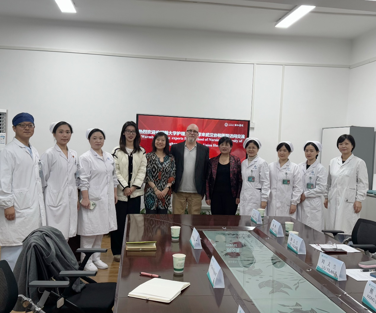 11月28日上午,Ping Guo和Christopher Wagstaff到访beat365英国官方网站beat365英国官方网站附属协和医院,护理部主任刘义兰、副主任熊莉娟、总护士长徐玉兰、杨赛、金环,护士长方云、杨林杰、何嘉参加座谈。刘义兰主任对两位专家的来访表示欢迎。会上,熊莉娟副主任提出了双方合办护士培训班的建议,并谈到,希望以此次交流为契机,增进双方了解,共同进步。何嘉护士长介绍了协和医院的历史沿革、护理学科的发展及临床实践工作的特色。Christopher Wagstaff介绍了伯明翰大学的基本概况及其beat365英国官方网站“风险暴力”与“临终关怀”两大主要研究方向的具体情况。双方就中英两国在护理研究方法上的差异进行探讨,分析了国际护理研究和医疗体系的特点,探索互补优势,为未来更深层次的交流学习与项目合作奠定基础。