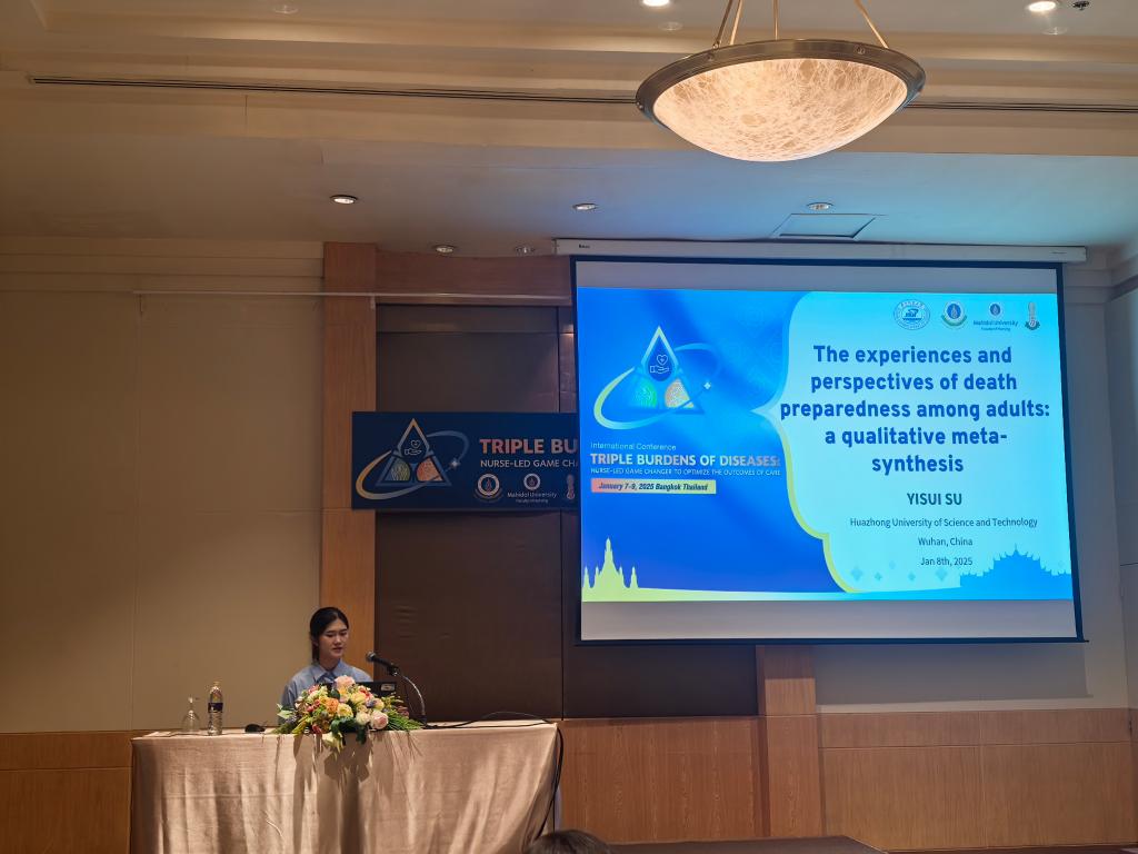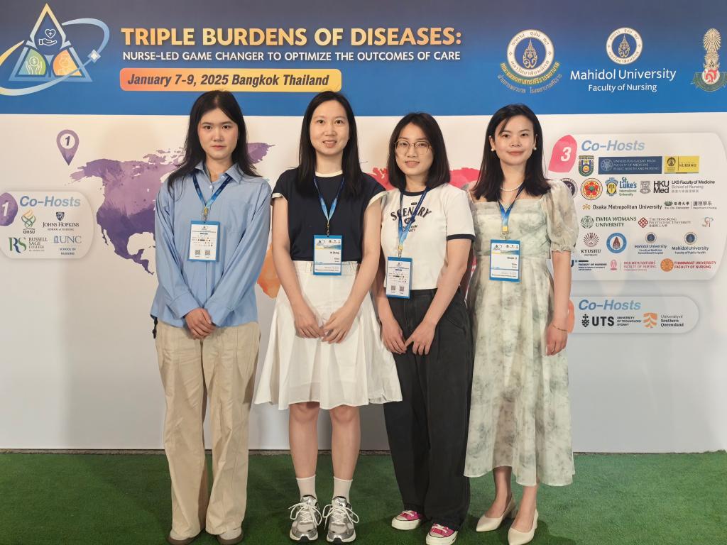 在全球护理事业蓬勃发展的当下,国际学术交流日益频繁。2025年1月7至9日,一场聚焦疾病三重负担的国际会议 “Triple burdens of diseases: Nurse-led game changer to optimize the outcomes of care”在泰国曼谷举行。beat365英国官方网站4名研究生在大会作口头汇报,与来自美国、澳大利亚、日本、韩国、新加坡、泰国、中国香港、中国台湾的青年学者一道分享成果与经验,展现了beat365英国官方网站护理学子的风采。