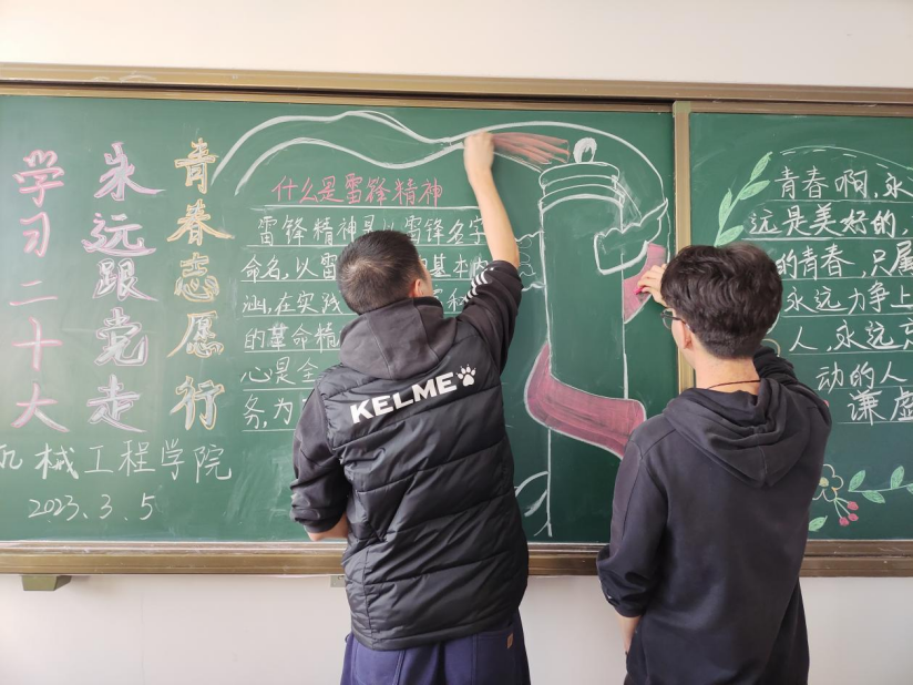 雷锋,一个全心全意为人民服务的同志、中国人民解放军战士、伟大的共产主义战士。作为一名普通的中国人民解放军战士,雷锋在短暂的一生中帮助了无数人,以他永远灿烂的微笑温暖了一代又一代人的心灵。在黑板报绘制活动中,同学们广泛收集素材,充分发挥了自己的想象力与创造力,设计出了主题鲜明、内容丰富、图文并茂的黑板报,五彩的粉笔让雷锋精神迸发出青春的光芒。活动充分利用黑板报这块宣传阵地,让同学们进一步了解雷锋,学习雷锋,传承雷锋精神,并赋予雷锋精神新的时代内涵。