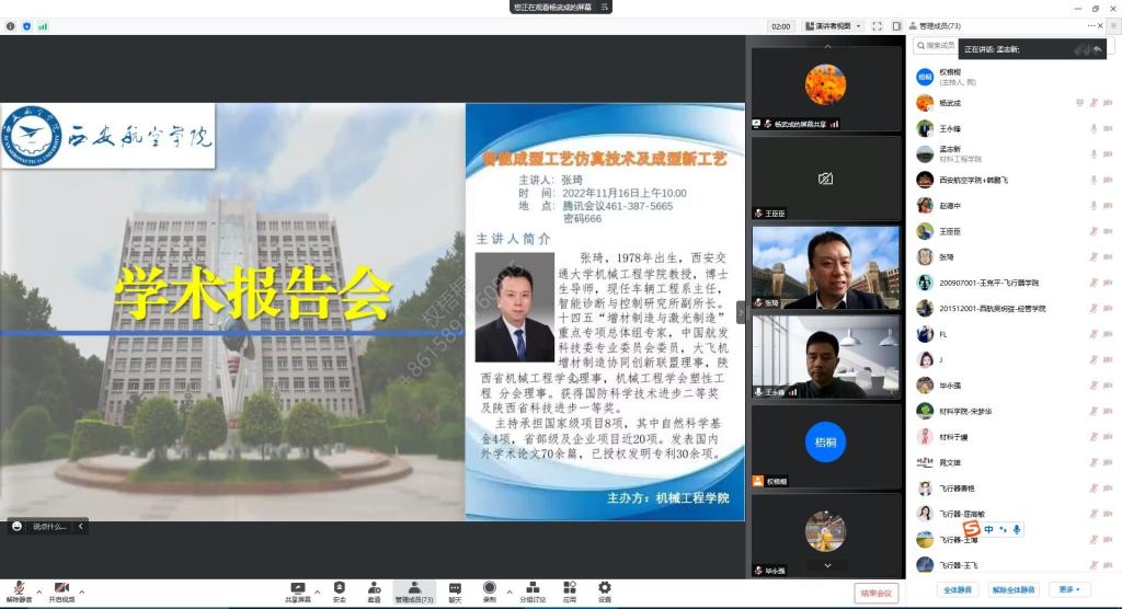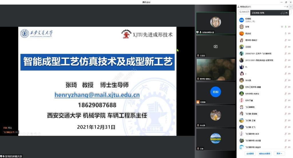 为进一步提升教师科研能力,了解机械学科前沿发展趋势,11月16日上午,beat365官方网站特邀西安交通大学张琦教授以腾讯会议线上形式为beat365师生做题目为《智能成型工艺仿真技术及成型新工艺》的学术报告。beat365官方网站杨武成副院长主持会议,王永锋院长致欢迎词,beat365官方网站教师及其他学院百余名教师在线参加了学术报告会议。