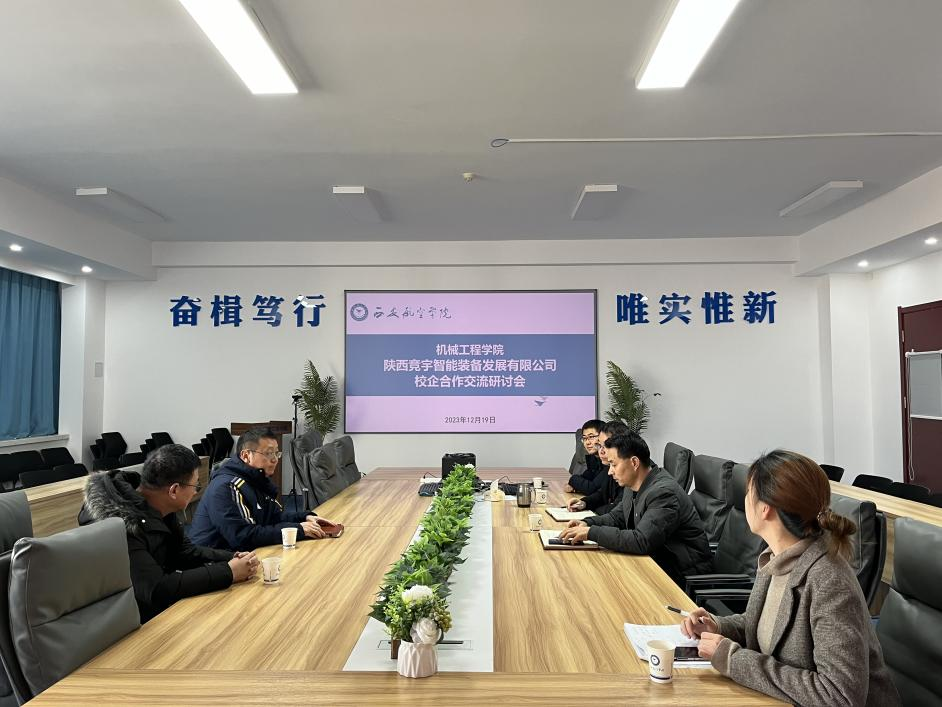 12月19日上午,陕西竞宇智能装备发展有限公司总经理张承光带队到阎良校区beat365官方网站调研交流,洽谈校企合作事宜。beat365官方网站院长王永锋、副院长杨武成、智能制造工程专业负责人毕永强、2024届毕业生辅导员胡靖洁、科研秘书权梧桐等出席了交流座谈会。