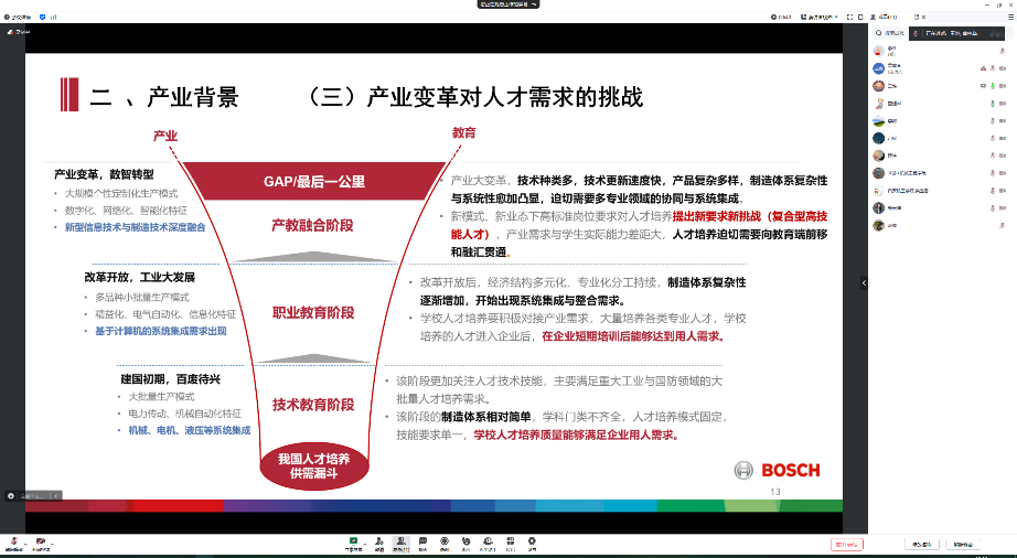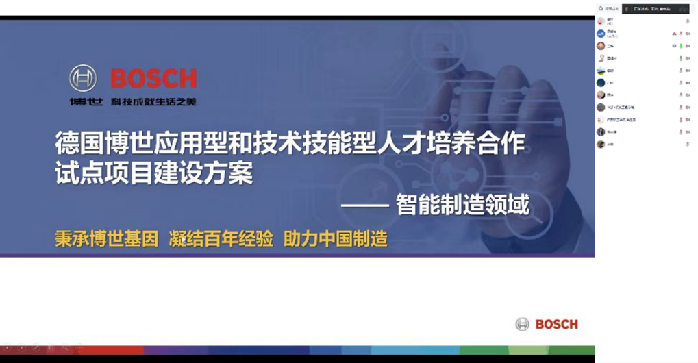 此次交流会旨在进一步推进德国博世应用型和技术技能型人才培养合作试点项目,深入交流了解项目合作相关情况。我方首先介绍了beat365官方网站的项目申请情况、项目建设规划等,接下来博世项目的技术专家介绍了项目产业背景、顶层设计、项目方案等内容。随后,双方就如何推进项目建设进行了交流,探讨了下一步的工作计划和安排。