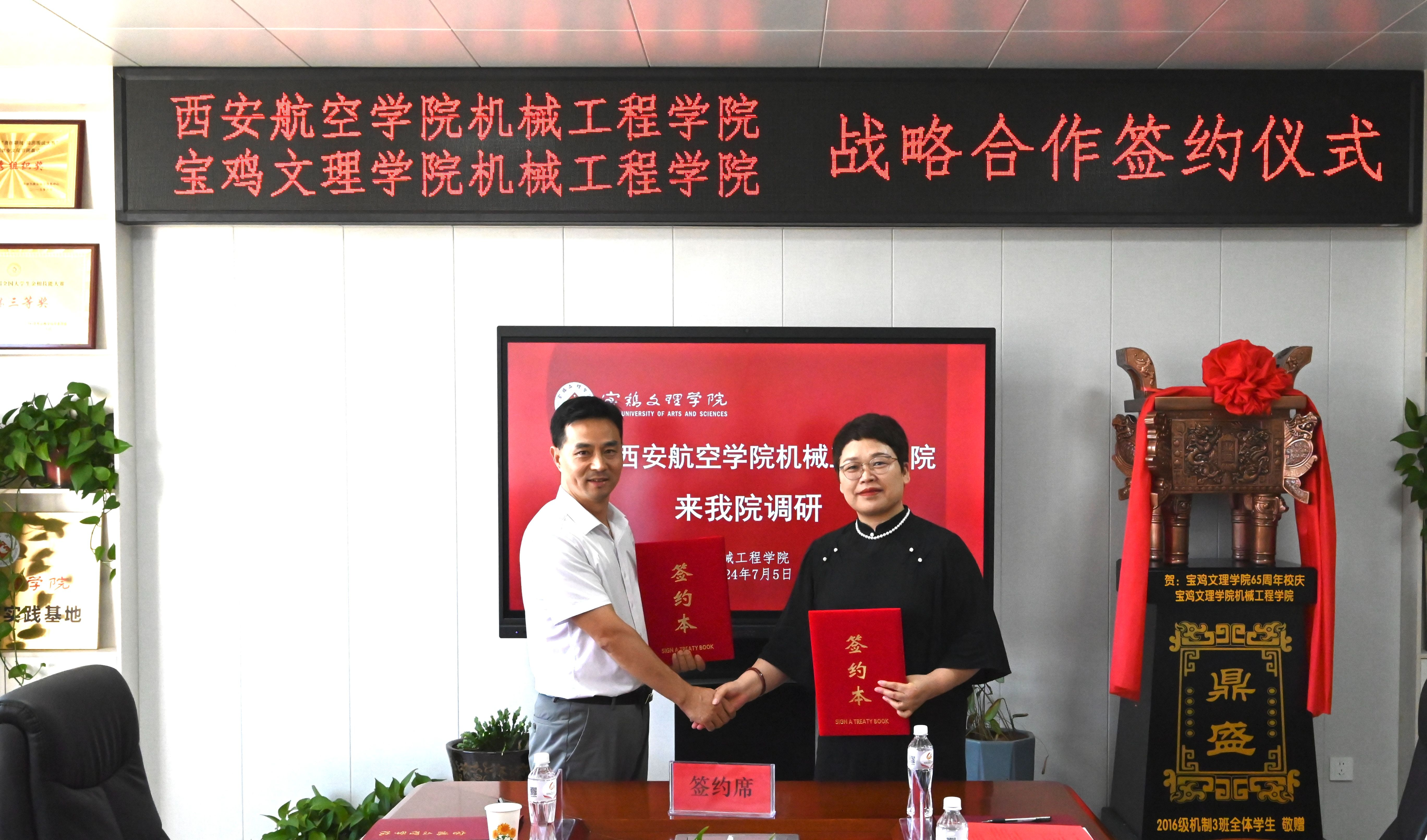 随后双方与会人员围绕党建、实践教学、研究生培养、科研合作等方面进行了交流,签署了签署学科与硕士点建设战略合作协议;我院杨武成、李懿、董桂华三位老师受聘为宝鸡文理学院硕士生导师。座谈会结束后,王永锋一行参观了宝鸡文理学院beat365官方网站的科研实验室。