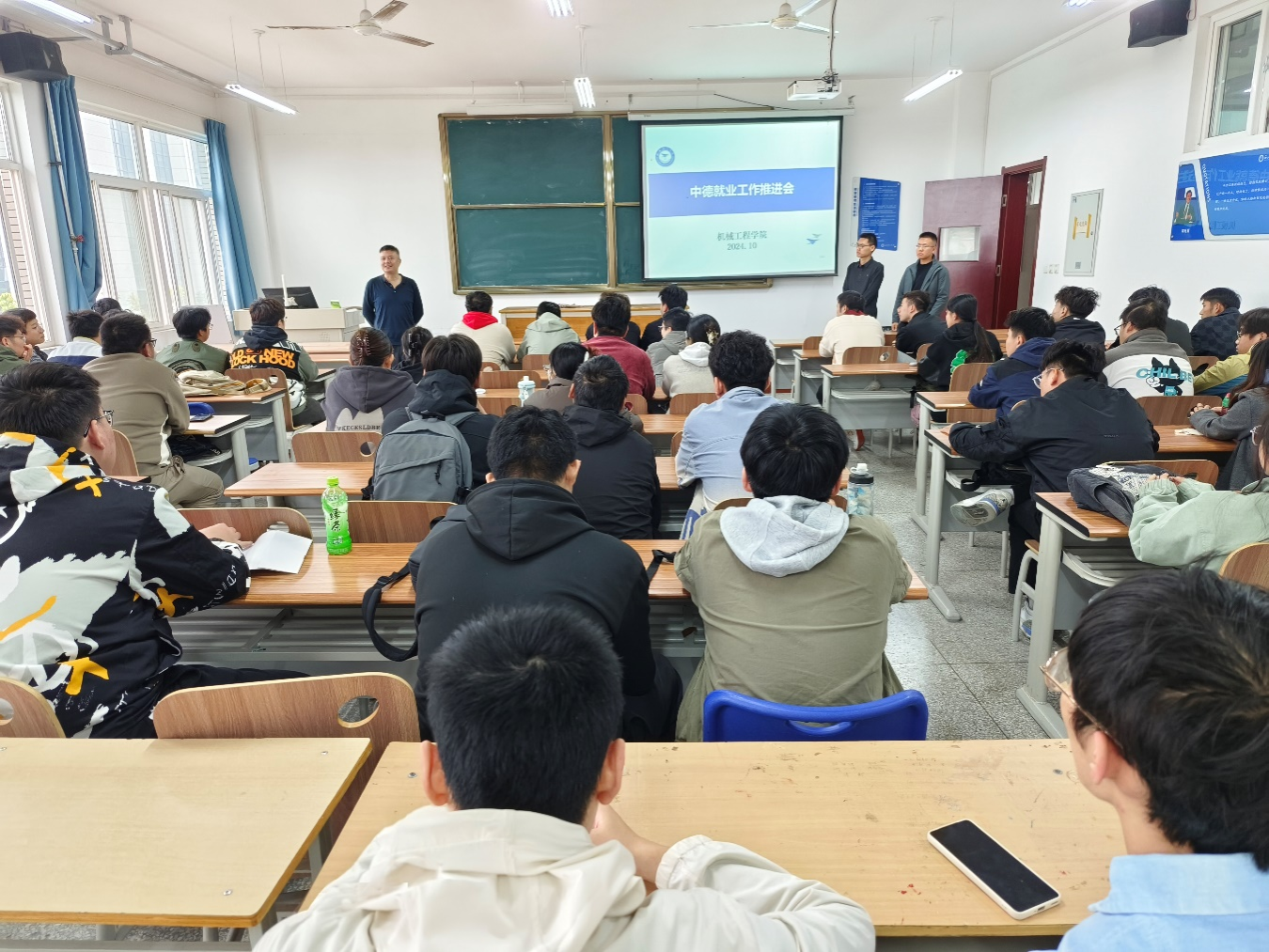 为推进中德合作办学毕业生就业工作,帮助学生更好地应对当前严峻的就业形势,10月21日,beat365官方网站召开中德合作办学毕业年级就业工作推进会。会议由副院长李懿主持,就业辅导员谢肖、王鹏博参加会议。
