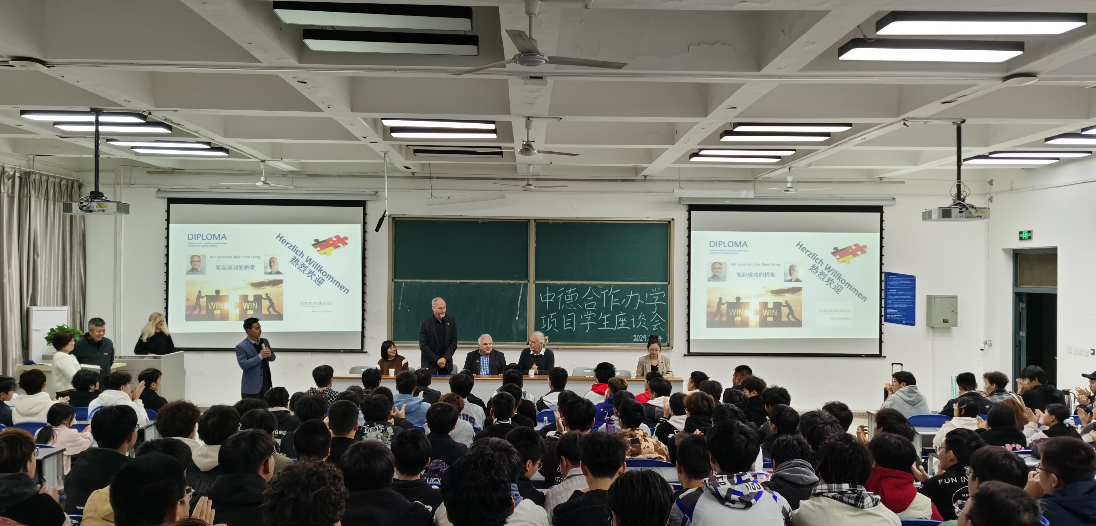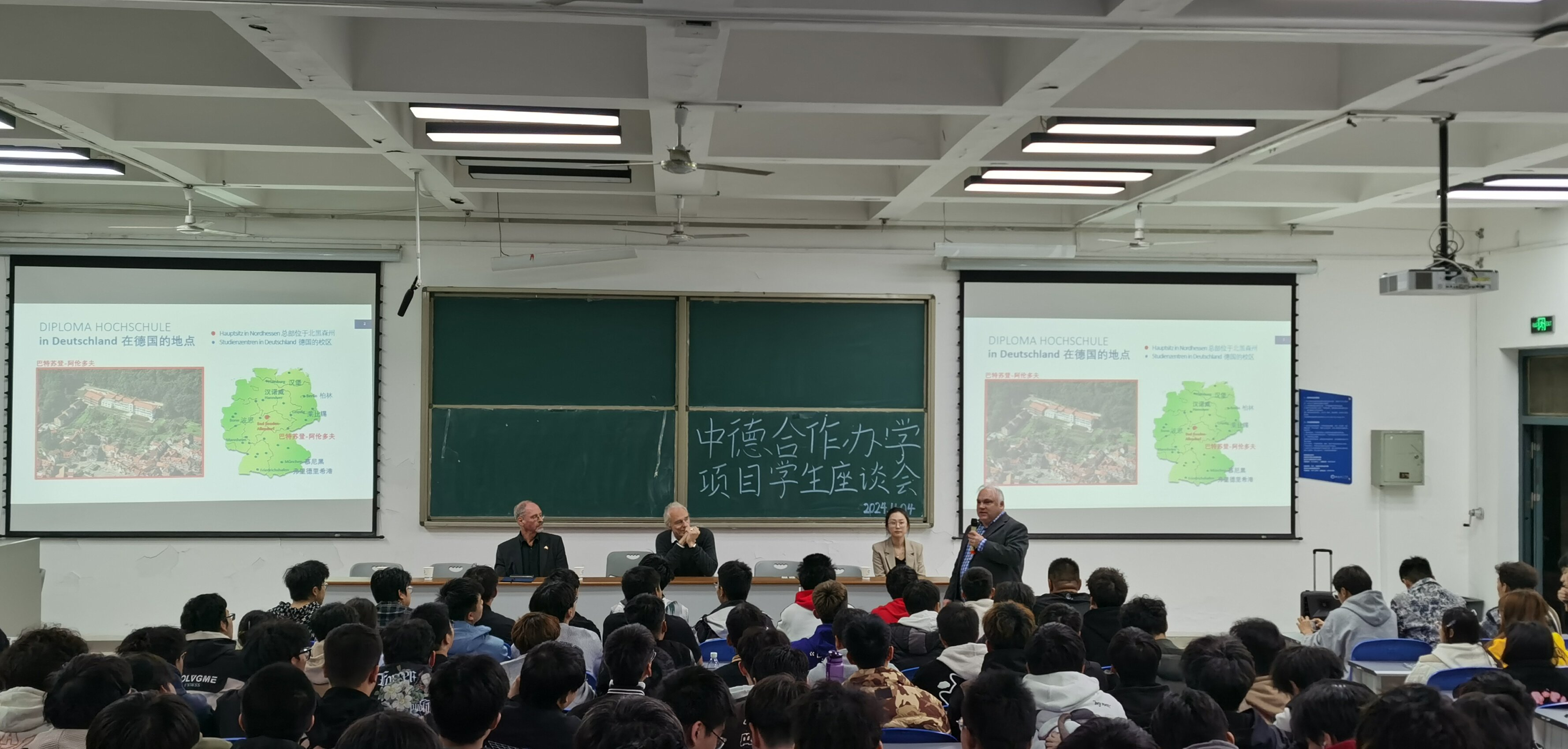 2024年11月4日,德国北黑森应用技术大学副校长Michale Namokel教授代表团一行四人来beat365访问。以此为契机,beat365官方网站于当天召开中德合作办学项目学生座谈会。