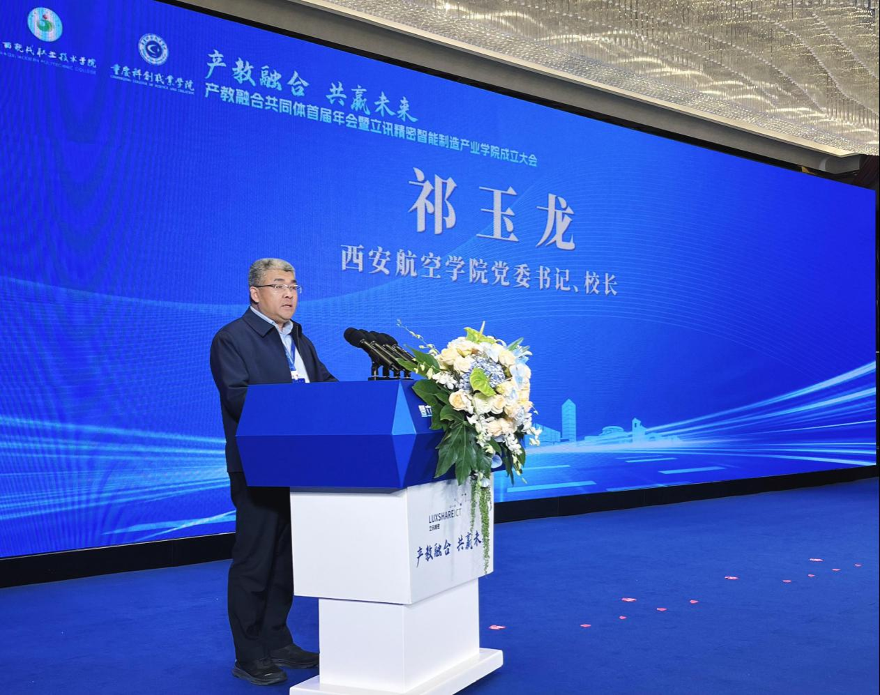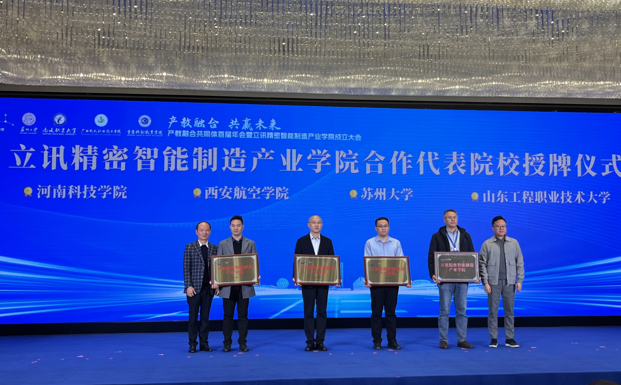 11月28日至29日,主题为“立讯携手,产教融合启新程——共绘未来蓝图,赋能产业创新”产教融合共同体首届年会暨立讯精密智能制造产业学院成立大会在昆山举行,会议由立讯集团、苏州大学等主办,参会单位来自全国各地20多家本科高校和40多家职业院校。beat365党委书记、校长祁玉龙应邀参加大会并致辞。beat365官方网站院长王永锋、副书记刘欣、综合办主任郭悦涵参加了与立讯集团的签约和授牌仪式。
