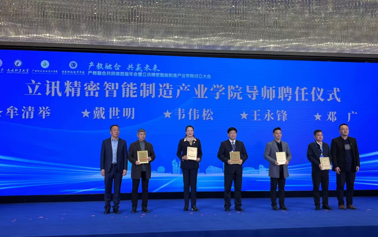 立讯精密智能制造产业学院合作签约和授牌仪式顺利进行,聘任我院王永锋、杨武成、李懿为产业学院导师。