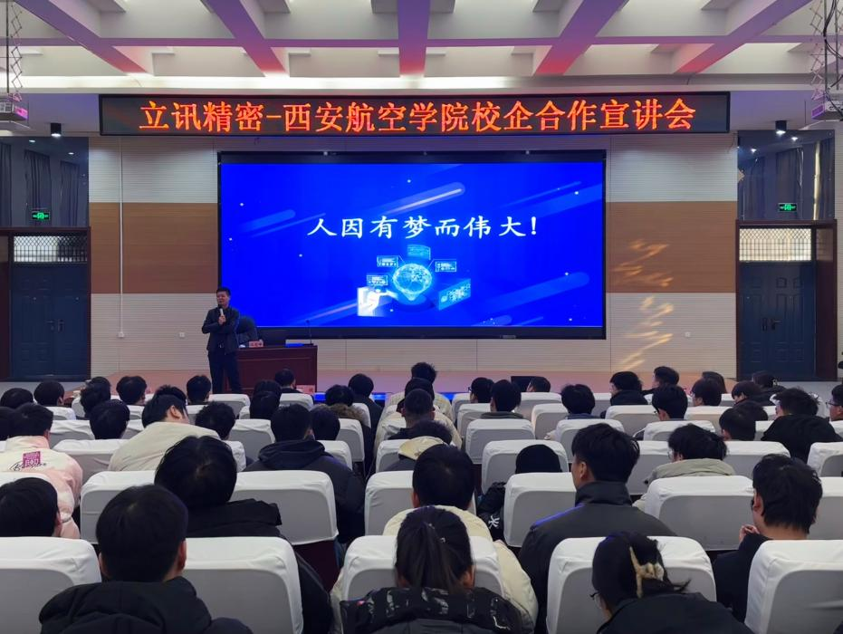 汪宝峰经理首先在报告厅召开了宣讲会。他就立讯精密的企业概况、企业文化、校企合作模式、合作优势、以及岗位性质、福利待遇、发展空间等做了详细的讲解。汪经理教导同学们在学习过程中,不仅要注重理论学习,更要关注实践能力的提升,以便更好的适应企业需求。与会同学们悉心聆听、认真思考,并围绕岗位内容、培训考核等问题踊跃提问,汪经理逐一进行充分解答。