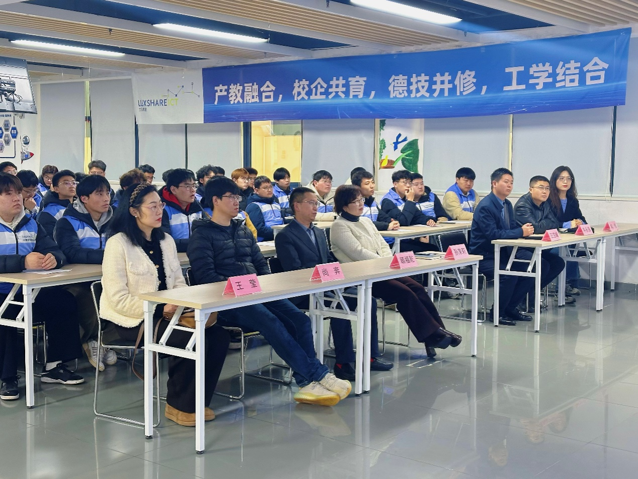 2月14日,双方于立讯精密智能制造产业学院内进行了深入的座谈交流,双方围绕智能制造行业的最新发展趋势、校企合作的新模式探索以及产学研一体化的实践路径等话题,展开了热烈而富有成效的讨论,为未来的深度合作奠定了坚实的基础。交流结束后,孙书记一行在产业学院领导的陪同下,深入企业的实际工作与学习场景,对智能制造实训中心、研发中心等核心区域进行了细致的考察,亲身体验了前沿技术的魅力。