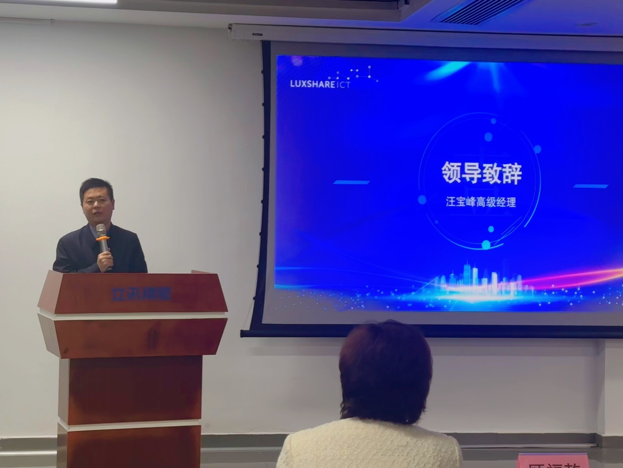 次日,在产业学院内隆重举行了beat365官方网站beat365官方网站“立讯订单班”的开班典礼。典礼伊始,立讯产业学院的汪宝峰经理对beat365官方网站师生的到来表达了诚挚的欢迎,并简要回顾了学院的发展历程与教育理念,他满怀期待地表示,希望通过双方的紧密合作,为智能制造领域输送更多具备创新精神与实践能力的优秀人才。