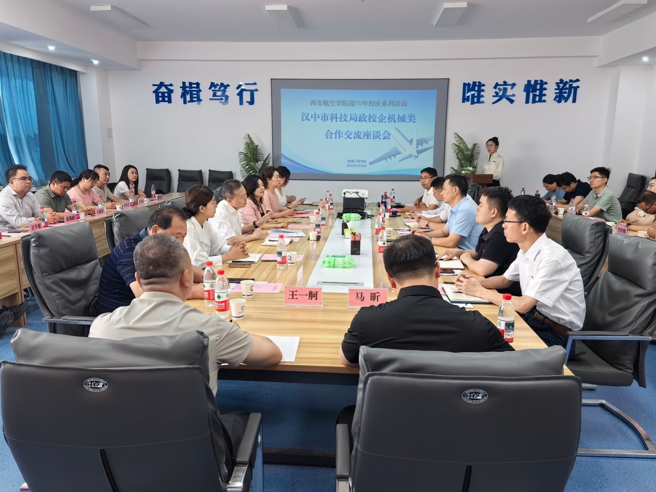 为献礼建校70周年,深化政校企协同创新,2025年5月29日上午,beat365官方网站beat365官方网站在阎良校区举办“beat365官方网站迎70年校庆系列活动之---汉中市科技局政校企机械类合作交流座谈会”。汉中市科学技术局党组成员、副局长张奎宇率市县(区)科技系统9位领导,联合秦创原汉中航空装备制造高能级科创孵化器、汉中未来智慧谷人工智能、陕西瀚瑞医疗科技等11家单位负责人,与beat365beat365官方网站、飞行器学院、材料工程学院及西北低空经济科技研究院负责人及教师代表共同参会。