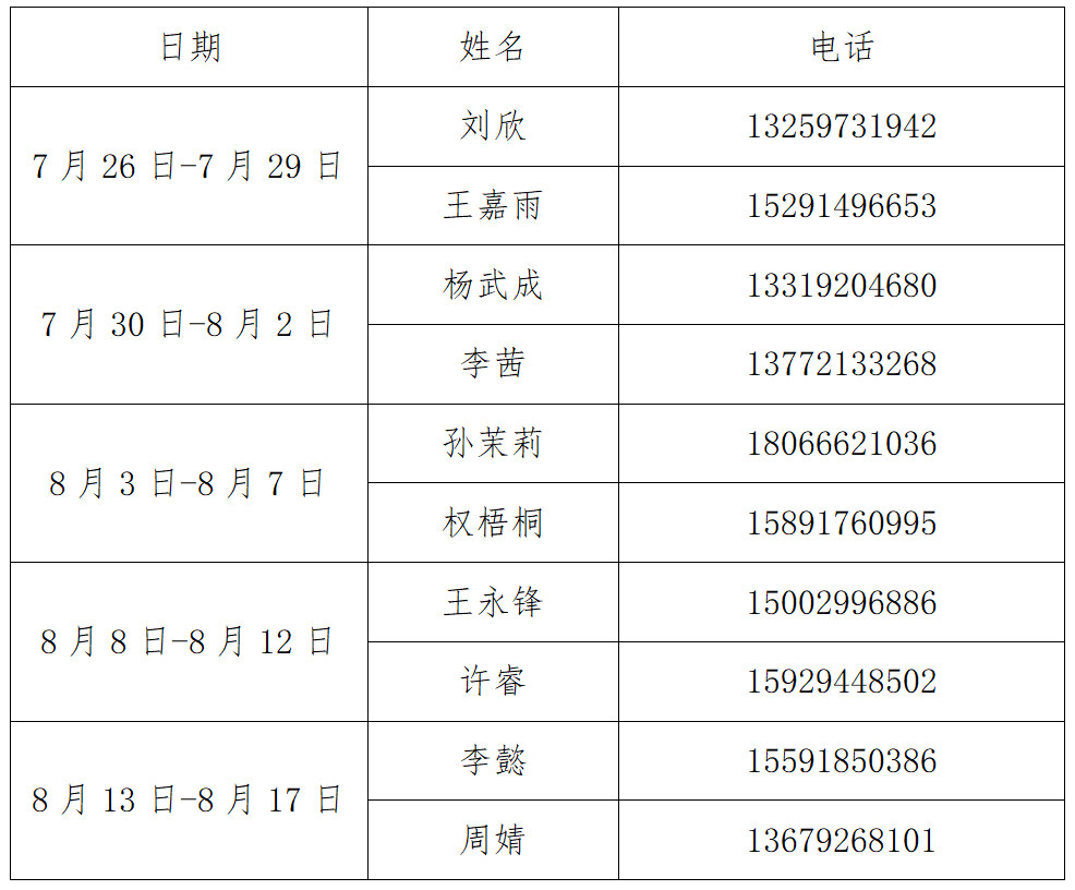 根据学校《关于2025年暑期放假安排的通知》文件精神,教职工放假时间为7月26日至8月17日,放假期间,beat365官方网站值班安排如下: