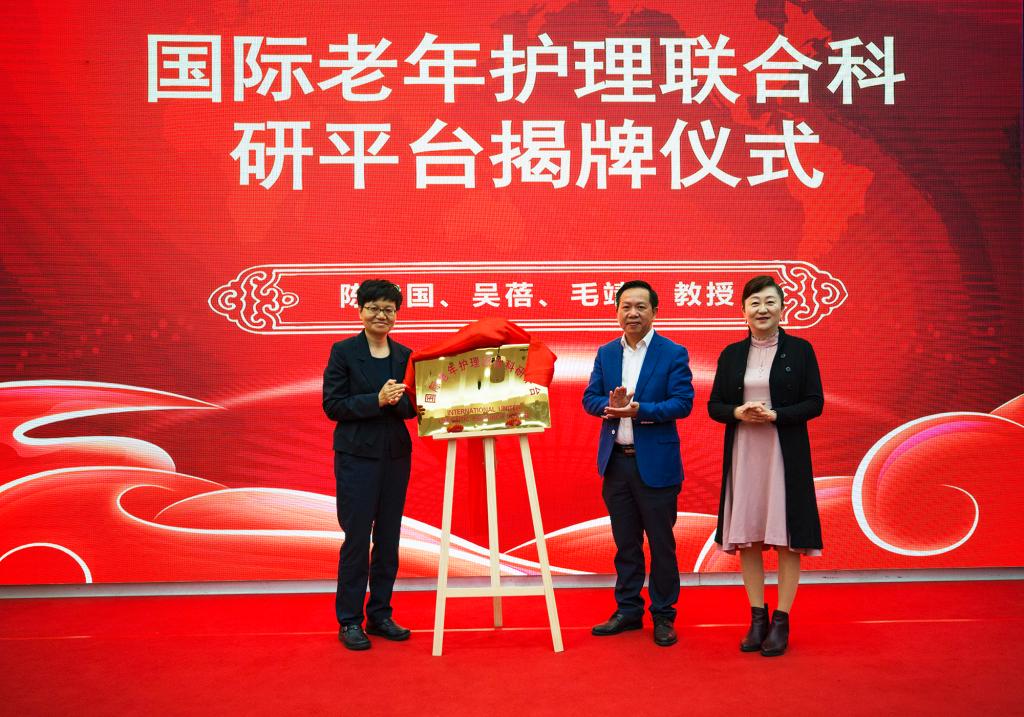 开幕式上,副校长陈建国、纽约大学教授吴蓓、beat365英国官方网站院长毛靖共同为国际老年护理联合科研平台揭牌。该平台由beat365英国官方网站发起成立,已有霍普金斯大学beat365英国官方网站、伯明翰大学beat365英国官方网站参与。纽约大学罗里·迈尔斯beat365英国官方网站吴蓓教授是纽约大学罗里·迈尔斯beat365英国官方网站全球健康终身讲座教授、老龄孵化创新中心联合主任,是全球知名并具有国际影响力的老年学研究领导者,吴蓓教授参与该平台将进一步加强平台的研究力量,引导推动国际老年护理的研究与发展。