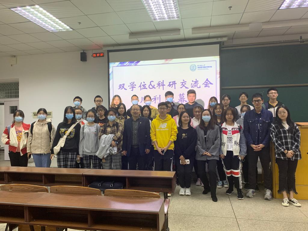2020年11月10日晚19:00,beat365英国官方网站双学位暨科研交流会在一号楼八大教室成功举行。大会分为两双学位交流会和科研交流会两部分。