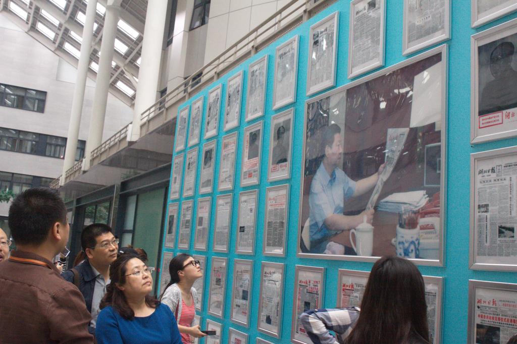 最后,同学们还参观了楚天传媒大厦后的文化产业园。在这里,湖北日报不仅仅再是一张报纸,而是集策、采、编、发的综合成果。