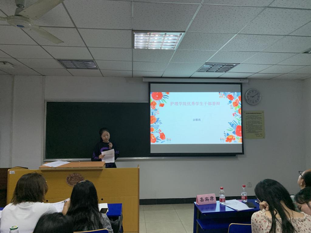 首先进行的是“校三好学生”的竞选,在精美PPT的映衬下,每一位选手进行了三分钟的自我展示,一张张荣誉证书,一次次公益活动,一项项护理科研……从专业学习到个人技能,从学生工作到义工活动,从科研创新到竞赛荣誉,答辩学生出色的表现和个人魅力获得了在场师生的肯定,风趣又不失严谨的答辩更是赢得了现场观众热烈的掌声。