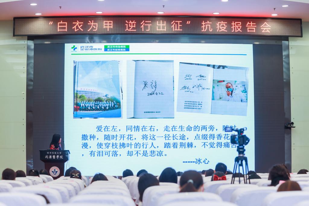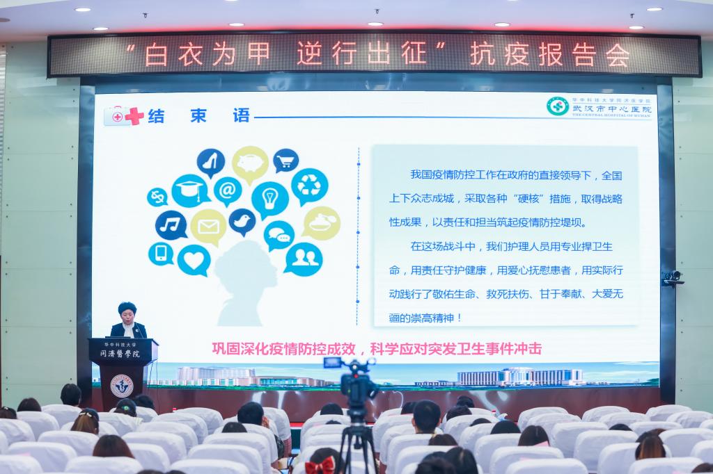 来自beat365英国官方网站附属协和医院、同济医院、武汉中心医院,以及武汉市金银潭医院这四所在2020年初战斗在抗击新冠肺炎疫情斗争中最前沿的护理同仁作抗疫报告,再次展现了“逆行而上”守护江城乃至全国人民生命安全的担当以及背后所蕴含的科学决策。2020级硕士研究生王佳庆刚刚离开临床工作、重回校园进行深造,他表示,被报告中充满人文关怀的抗疫故事所打动,感叹应以抗疫英雄前辈为榜样,作为新一代的护理人,要坚定信念,勤勉自强,勇担重任。