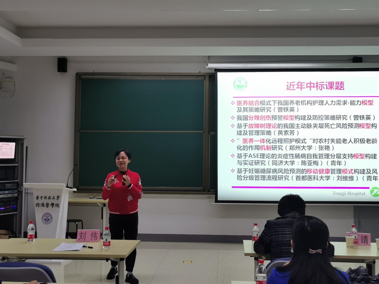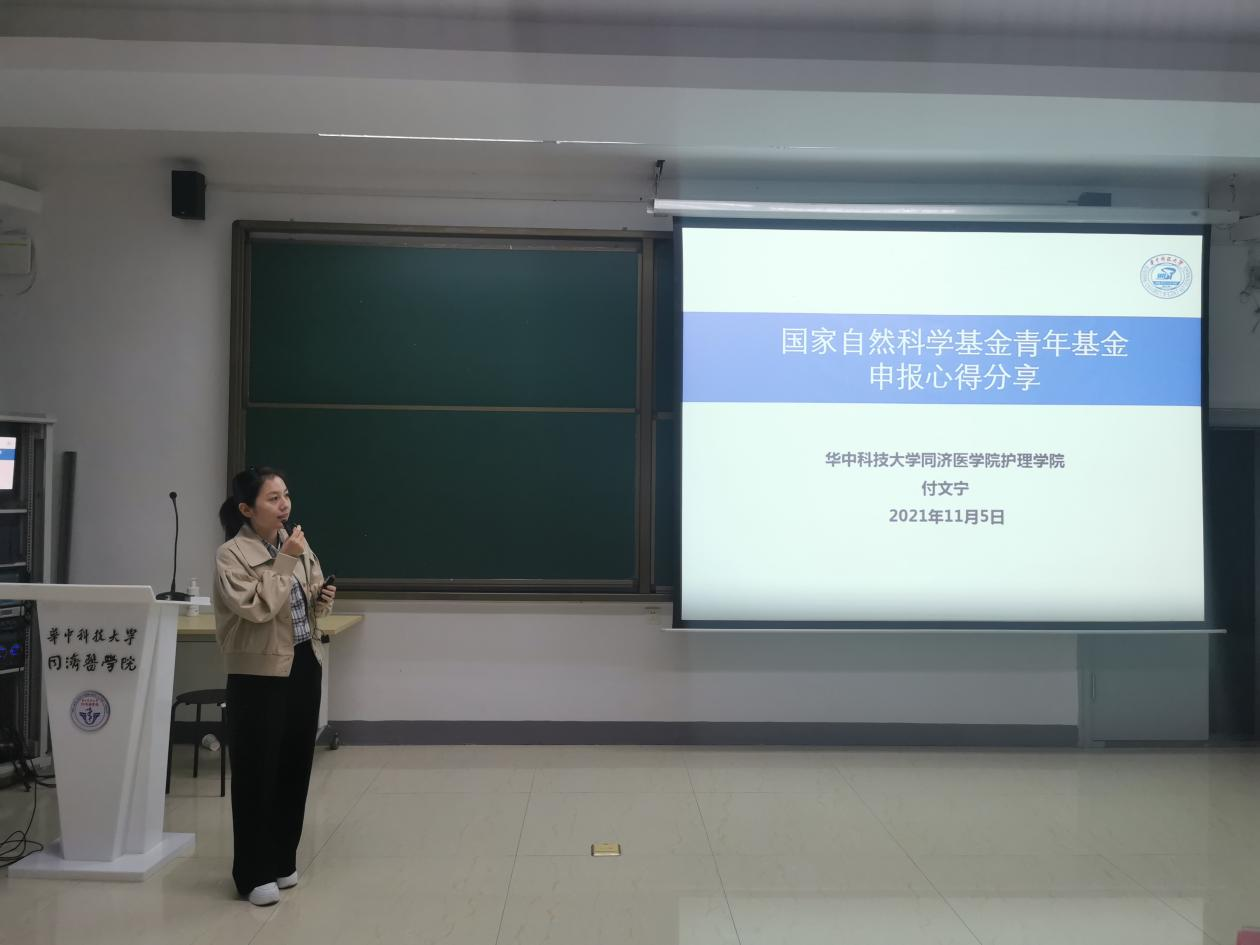 附属同济医院护理部副主任曾铁英、beat365英国官方网站副教授苏艳伟、beat365英国官方网站青年教师代表付文宁就国家自然科学基金的申报及标书撰写分享了自己的经验,为参会教师及学生带来了一场丰盛的学术盛宴。
