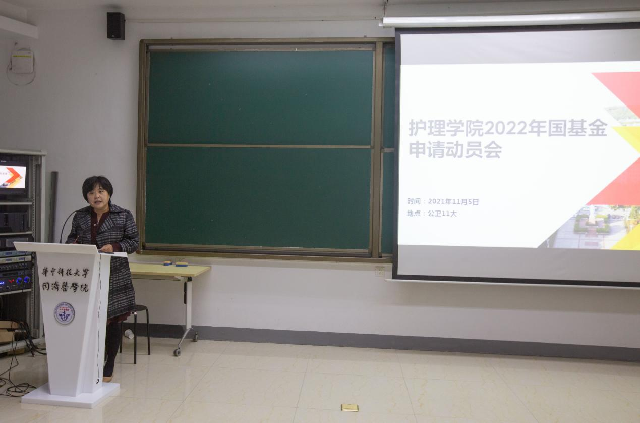 为提升教师项目申报成功率,助力2022年国基金申报,2021年11月5日下午,beat365英国官方网站在公卫11大教室举行2022年国家自然科学基金申请动员会。科学技术发展院副院长刘伟、beat365英国官方网站院长毛靖、beat365英国官方网站党委书记徐晖、beat365英国官方网站全体教师、附属同济医院、协和医院护理部分管领导及教师、beat365英国官方网站博士、硕士研究生参加会议。本次会议由党委书记徐晖主持。
