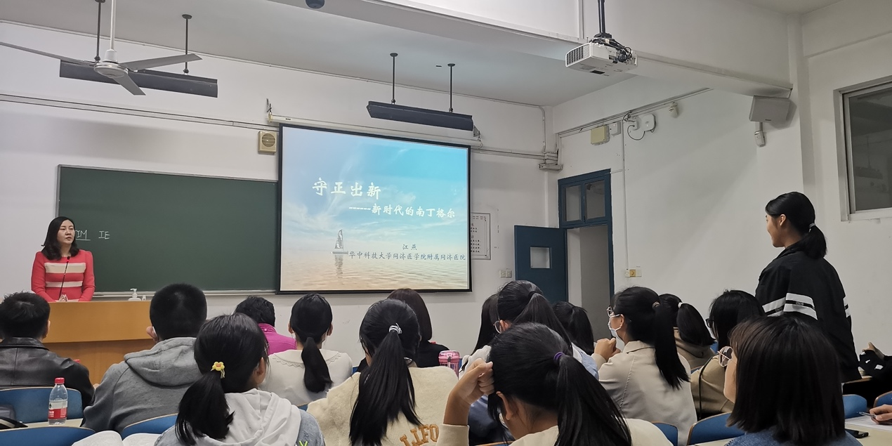 会议伊始,江燕护士长以“传承红色基因,创新发展护理”为主旨,以“守正出新,争做新时代的南丁格尔”为题,结合自身经历和各类大创项目,诠释着同济精神,为21级护理新生带来了一场丰富翔实的演讲。