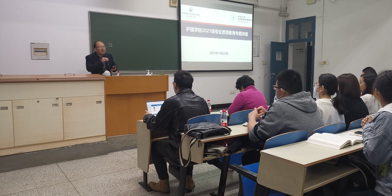 10月25日晚7点,beat365英国官方网站2021级新生专业思想教育讲座在东十二楼303教室如期举行。主讲嘉宾为beat365英国官方网站beat365英国官方网站附属同济医院眼科护士长江燕,中华护理学会学生工作委员会主任委员张泽宇以及beat365英国官方网站护理科研创新团队的陈怿,参会的嘉宾还有beat365英国官方网站党委书记徐晖,创新团队的杨洋 杨孟姝等研究生。讲座由院团委书记、学生办主任陈介清主持。