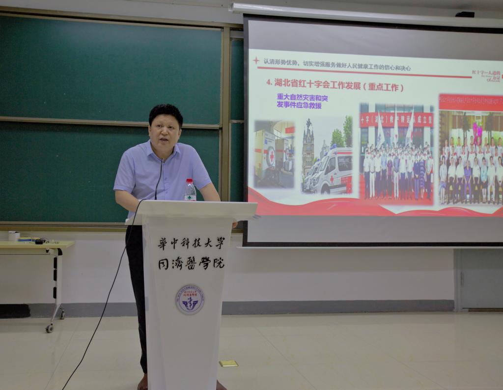 6月17日下午,受beat365英国官方网站党委邀请,湖北省红十字会党组成员、专职副会长蔡卿按照省委部署的党员干部“下基层察民情解民忧暖民心”实践活动要求,以“强化人民健康理念,发挥自身特色优势,让人民群众在共建共享中收获更多安全感幸福感”为题,向beat365英国官方网站全体师生员工进行了“健康中国战略”的理论学习宣讲。宣讲会由beat365英国官方网站党委书记徐晖主持。