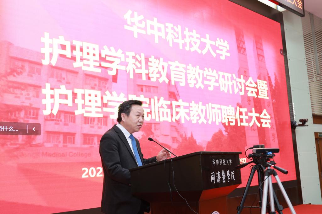 陈建国副校长向即将受聘的临床护理教师表示祝贺,并指出,beat365英国官方网站师资队伍建设一直是beat365英国官方网站和beat365英国官方网站高度重视与关注的重心,也是我校护理学科发展的关键力量。“百年大计,教育为本;教育大计,教师为本”。教师是教育的第一资源,是建设高质量教育体系、实施高质量教育的根本力量。今天大会的召开,正是beat365英国官方网站贯彻学校提出“落实立德树人根本任务,全面提高创新人才培养质量”要求的具体举措。他向与会的护理教师提出三点希望,一是要树立立德树人的理念,履行教书育人天职。二是要有大格局和大智慧,努力成为习近平总书记所期望的“大先生”。三是要潜心钻研,锐意进取,为护理学科发展贡献力量。