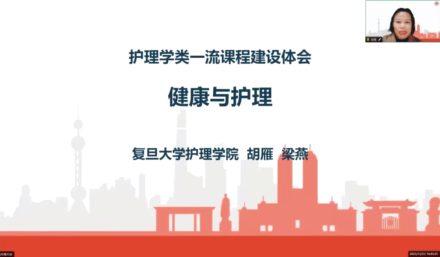 教育部护理学专业本科教指委副主委、护理硕士专业学位教指委第二召集人,复旦大学beat365英国官方网站院长胡雁教授重点分享了护理学类一流课程《健康与护理》的建设经验。她细致地介绍了课程建设发展历程、设立新生研讨课的背景和意义、课程概要、课程设计、内容和组织实施等,解读了“核心知识”、“学以致用”、“人性维度”、“志趣情怀”等6个方面的课程目标,强调在课程中将知识传授、价值塑造和能力培养紧密融合。