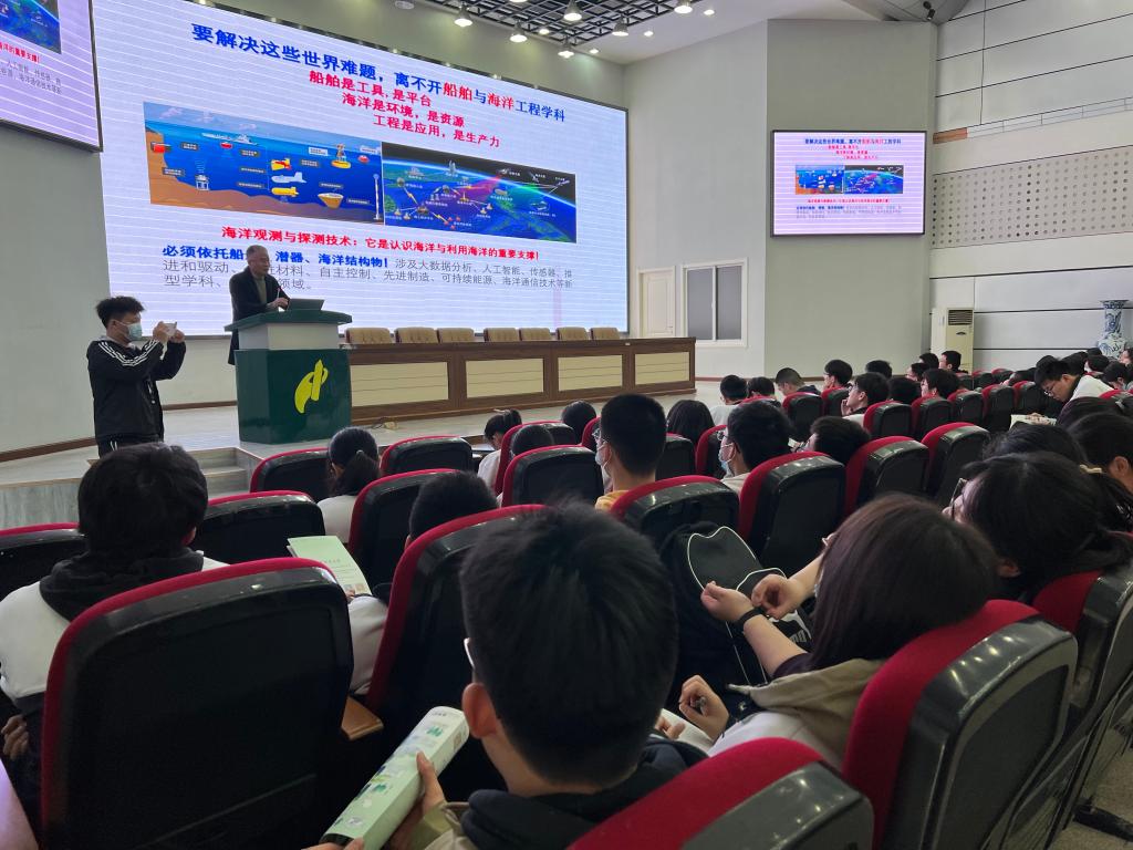 该科普讲座以“‘船’承奋斗奉献精神,培养海洋强国建设一流人才”为主题。内容分别从海洋强国,担当使命、立德树人,铸魂教育、以本为本,聚焦一流、国际合作,拓宽视野、自主学习,规划未来五个章节循序渐进,引人入胜地介绍与宣传。