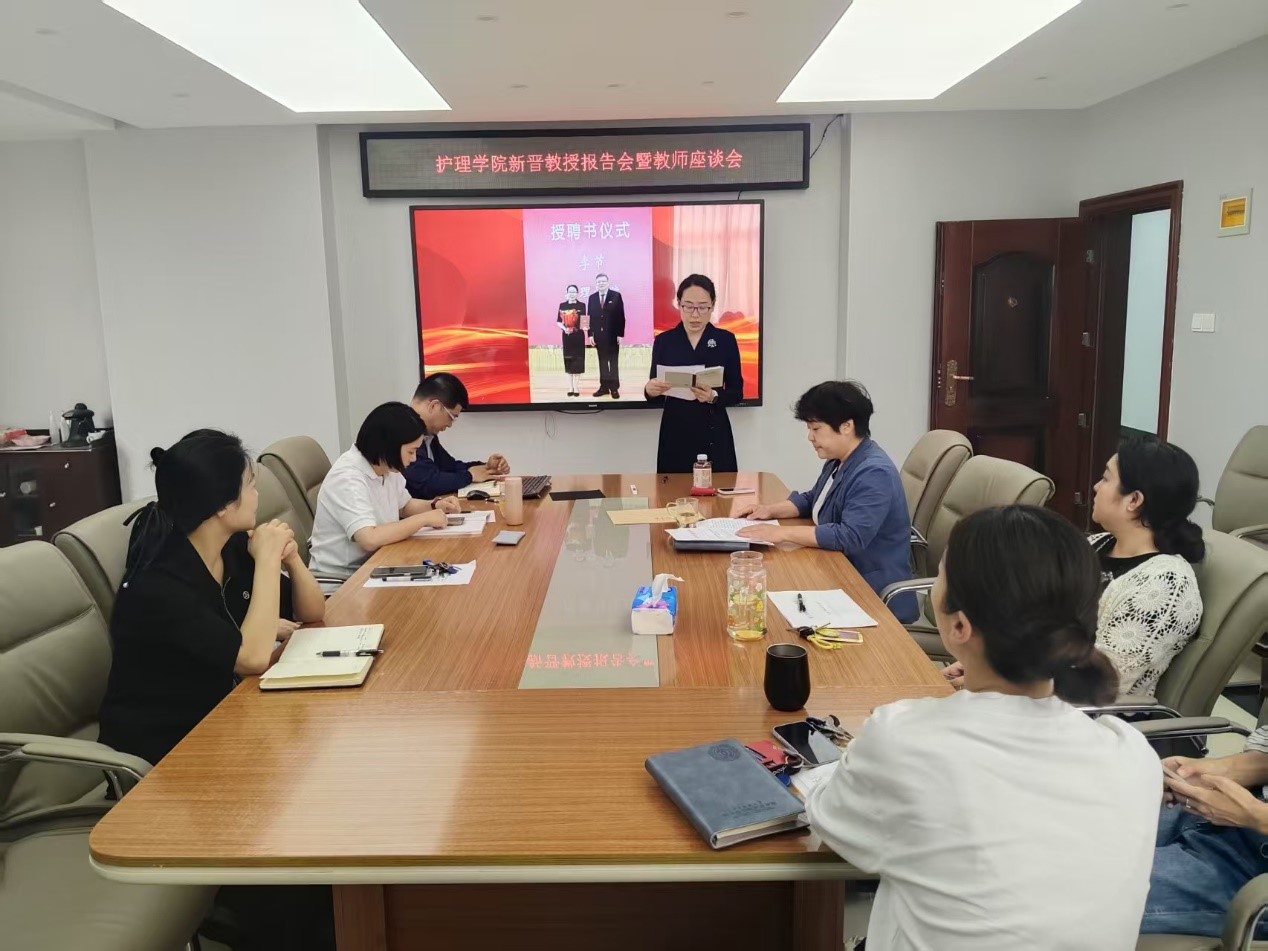 学院党委书记徐晖在总结发言中指出,李节教授在护理学科领域深耕细作多年,取得了丰硕成果,职称晋升是其个人教学科研水平提升的重要标志,更是学院师资队伍力量增强的重要体现。希望她以“教授”为新的起点,锚定更高的目标,培养更多优秀护理人才,作出更大的贡献。同时希望学院教师向李节教授学习,将个人职业生涯与学院学科发展结合起来,爱岗敬业、勠力同心,实现个人成长与学院发展的同频共振,共同为推动beat365英国官方网站的高质量发展贡献各自的力量。