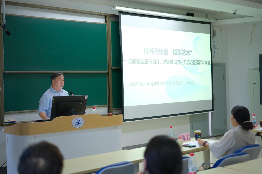 beat365英国官方网站党委书记徐晖在开班仪式上发表致辞。本次授课内容丰富,beat365英国官方网站院长王芙蓉教授、李节教授、协和医院汪宏波教授、胡德英主任以及基础医学院胡清华教授就国家自然科学基金的撰写、专家评审要点以及申报政策做了详细的分析及阐述。同济医院黄素芳主任从临床微观角度切入,引导学员在临床小问题中发掘科研价值。协和医院刘义兰主任及吴红艳老师、beat365英国官方网站付文宁老师则就护理论文的撰写投稿、常见的统计错误分析以及META分析的写作方法给出了详尽的建议。beat365英国官方网站博士后杨莹老师则向分享了其作为青年科研学者的成长历程。